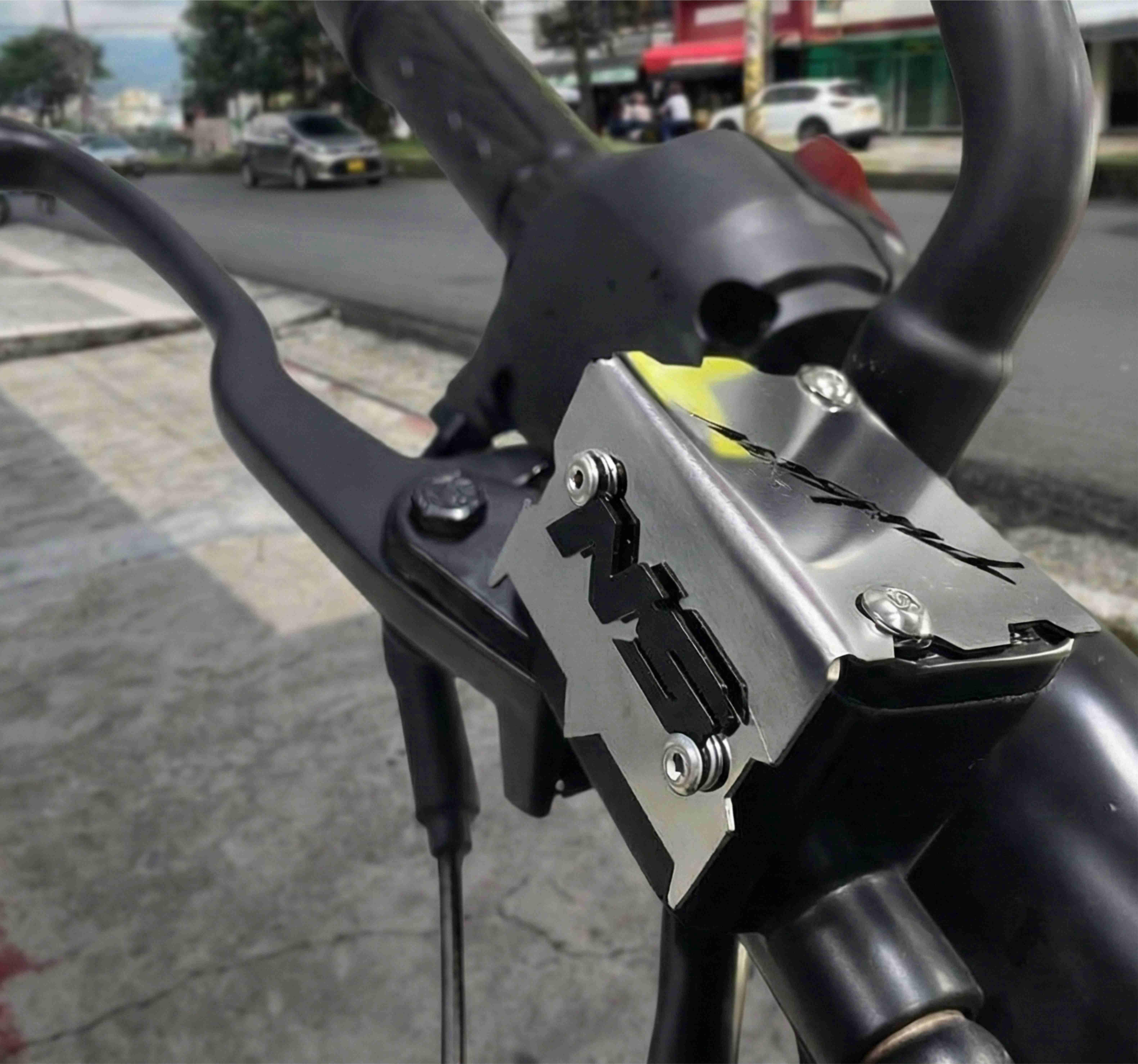 ❌ La Bomba Delantera: Está expuesta a caídas, En una caída leve o recostada de la moto, la tapa original se raspa